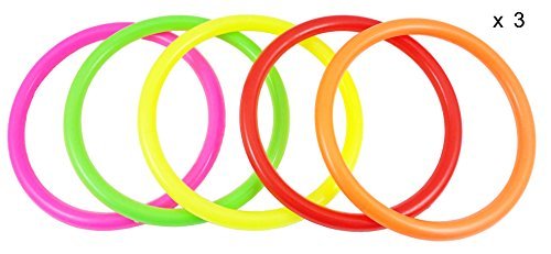 - Includes 3 pink, 3 green, 3 yellow, 3 red and 3 orange 15in plastic rings